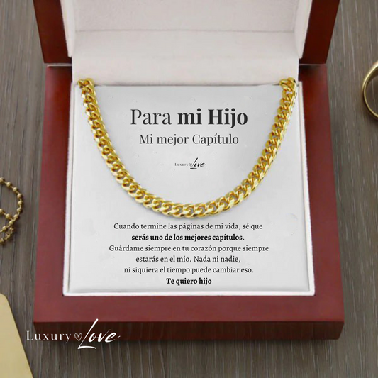 Collar Cuban Style® Dorado para mi Hijo (con carta dedicada y Caja con Luz)